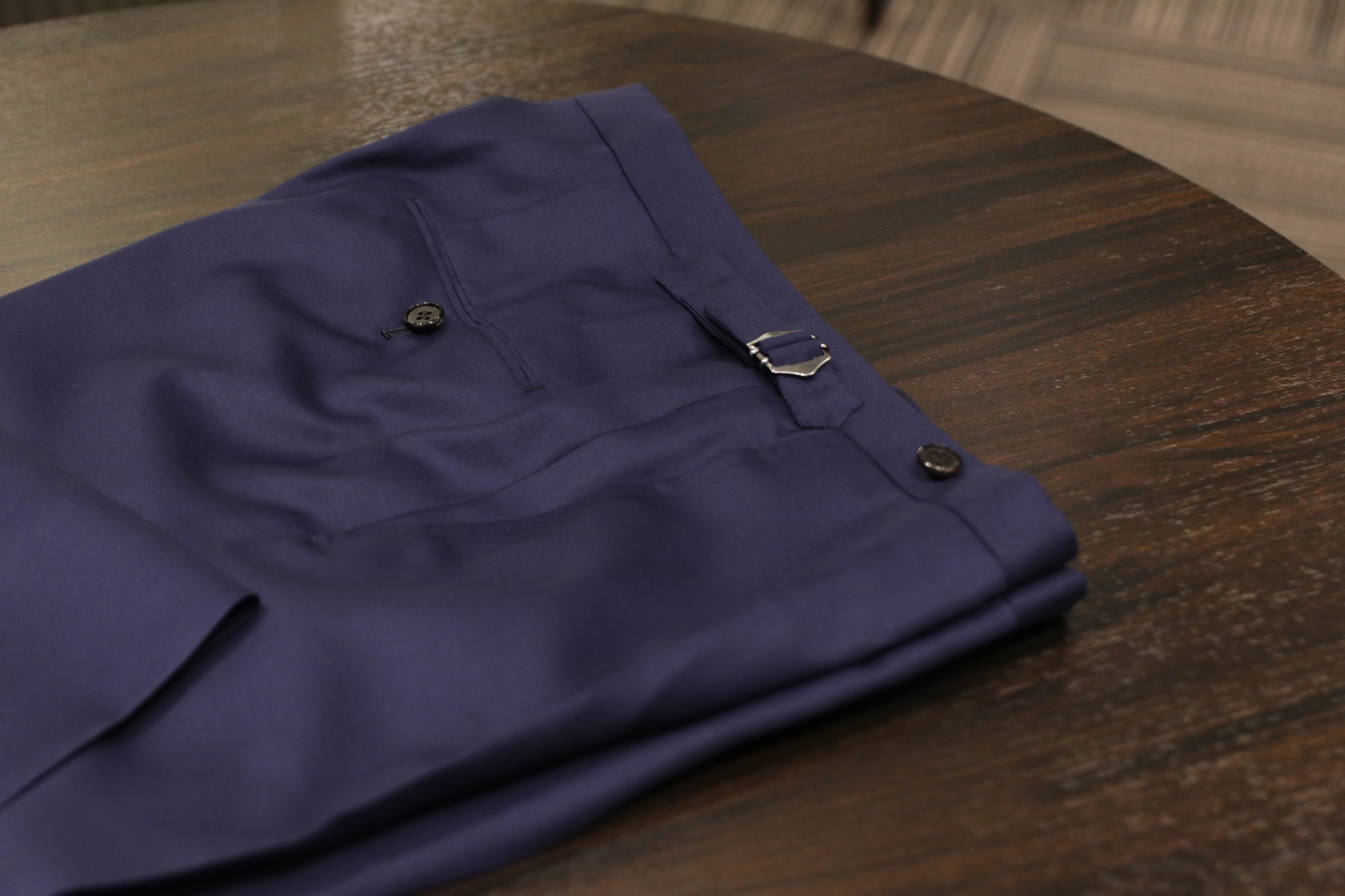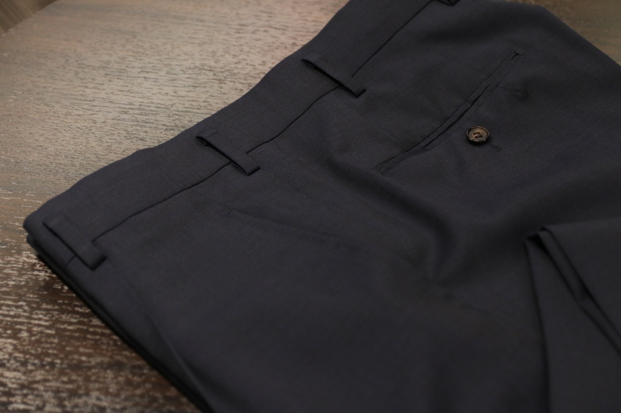 トラウザーズは基本的にはベルトループを付けない仕様を標準とさせていただいておりますが、