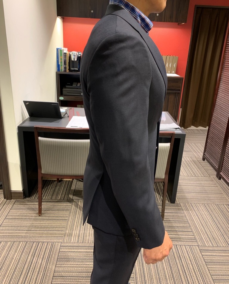 パターンオーダーで出来る範囲内の補正や調整を駆使し仮縫いは無しで仕上げました。