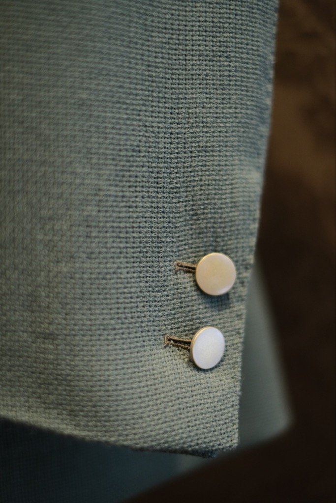袖釦はお客様ご指定の2個で位置決めも慎重に行いました。