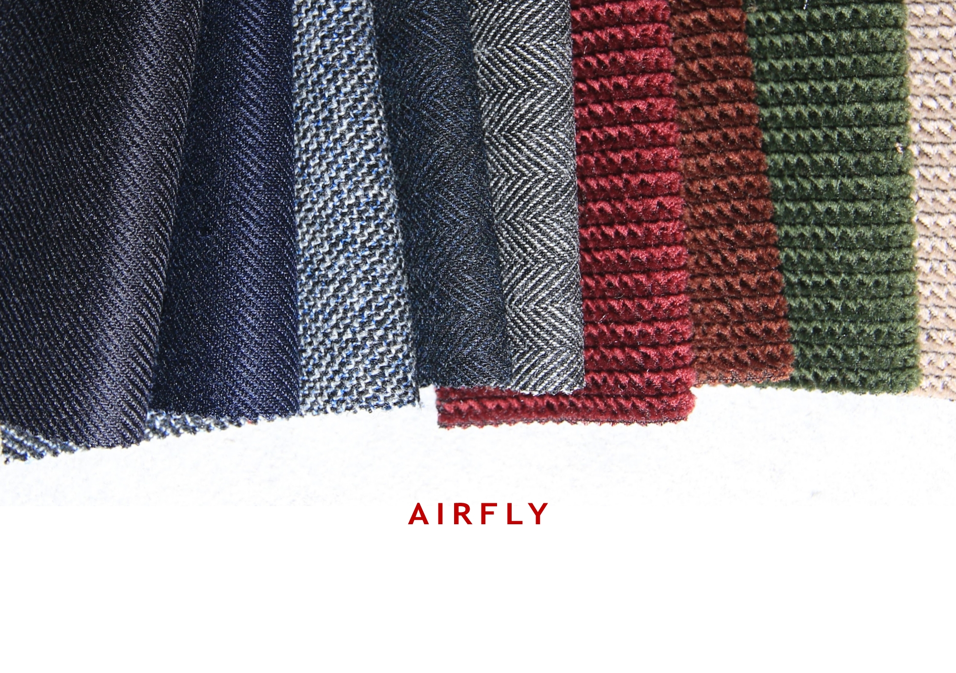 エアフライシリーズのブレザー、ジャケット用の新素材です。ファインウールと極細のポリエステルによるエアリーでウォーム感がある軽量素材です。