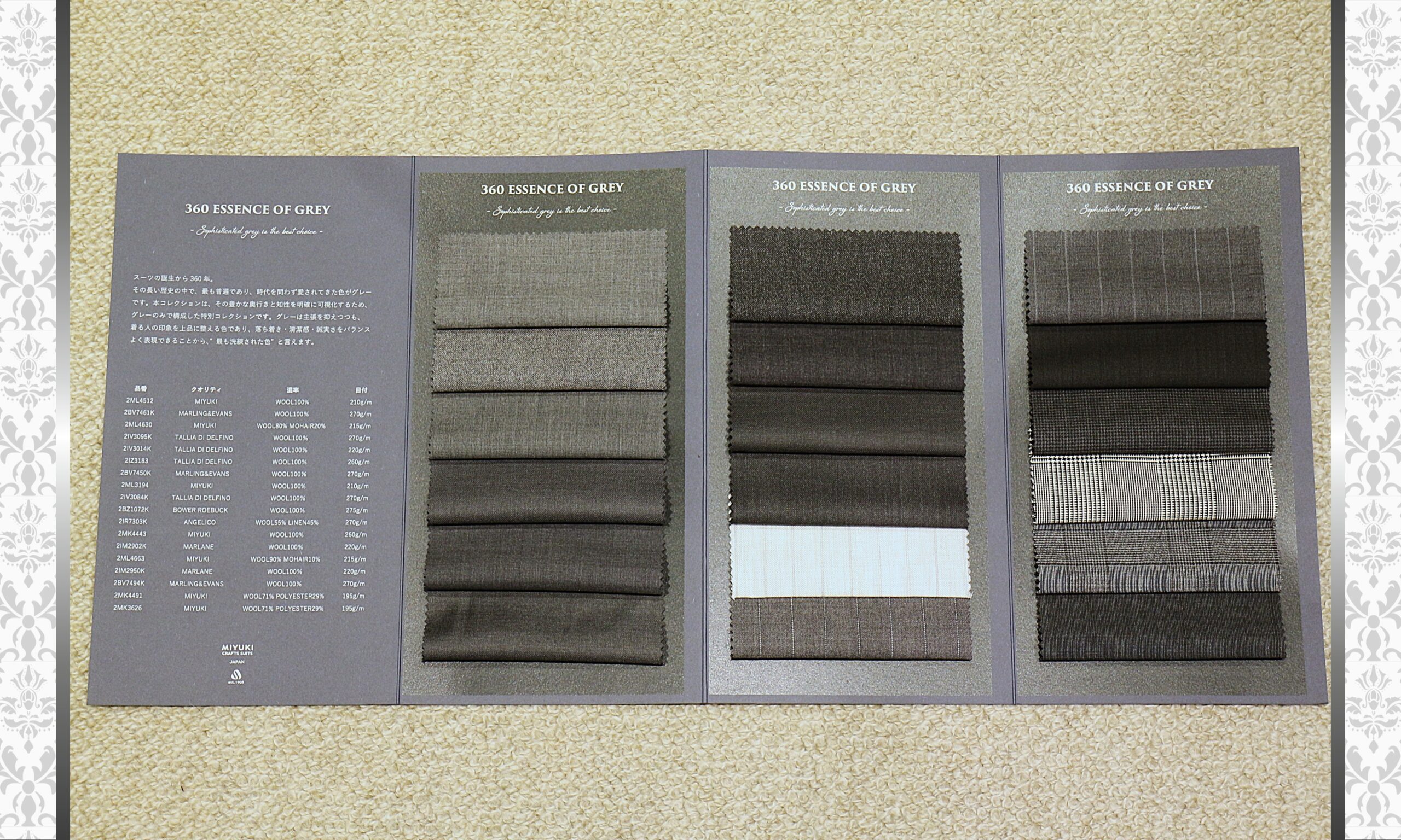 MIYUKI CRAFTS SUITSがおくる、12色の紺NAVY PALLETに続く36色のグレーと称した2026年のイチ推し企画案内です。