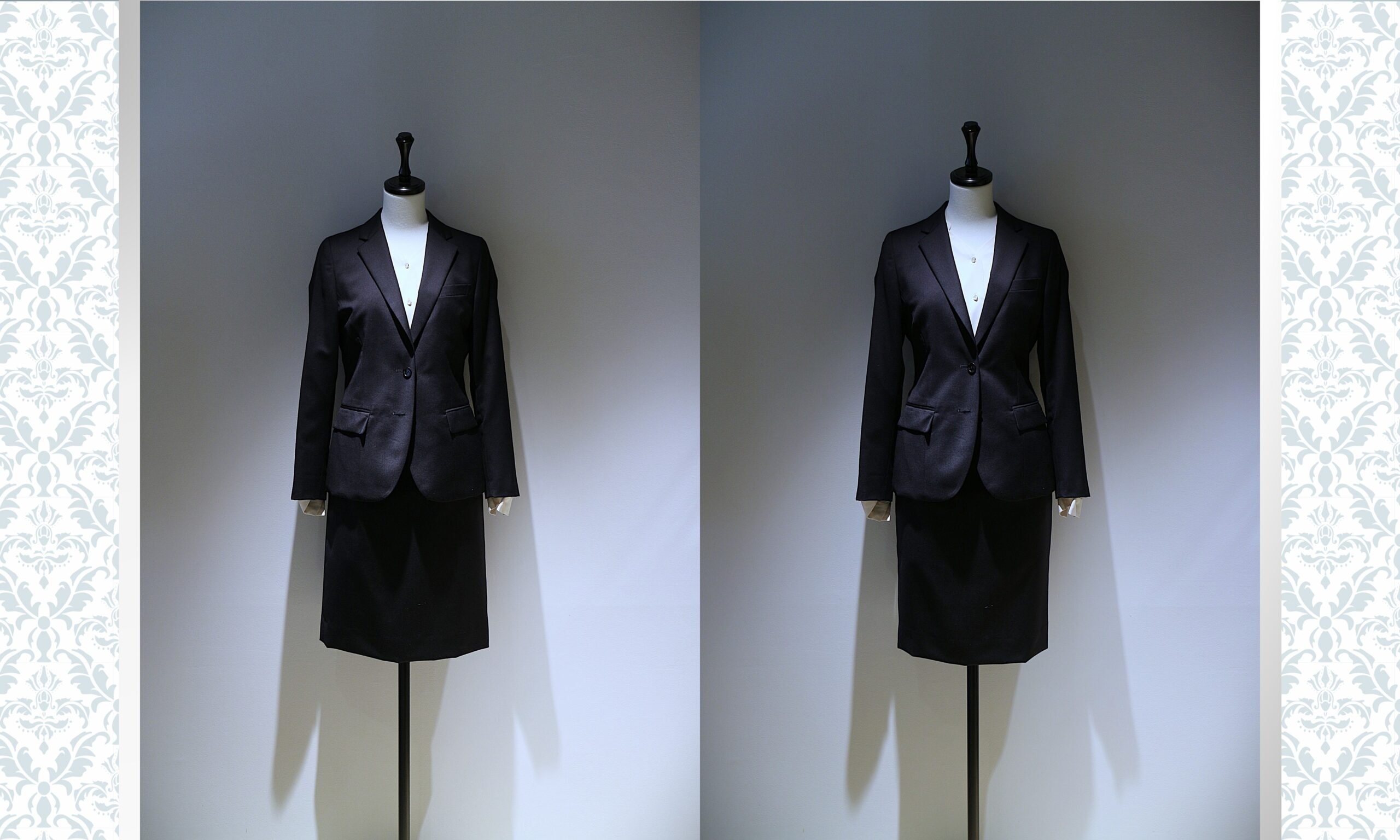 ジャケットのウエスト、スカートの裾のサイズを変えるだけでも与える印象が変わります。