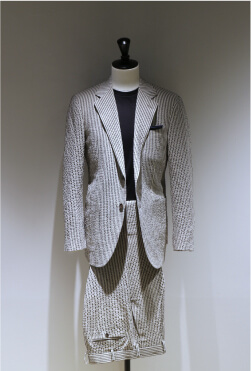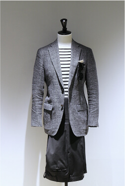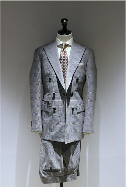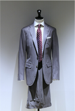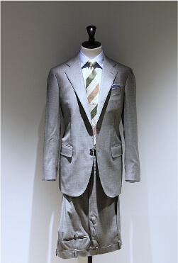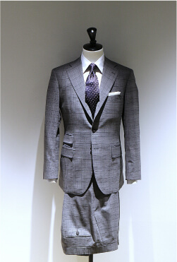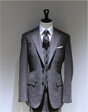 ハウスモデルから形を選び、細かい部分のディテールデザインやバリエーションの選択をします。選んだ生地に最適な釦や裏地を合わせてカスタムセレクトができます。